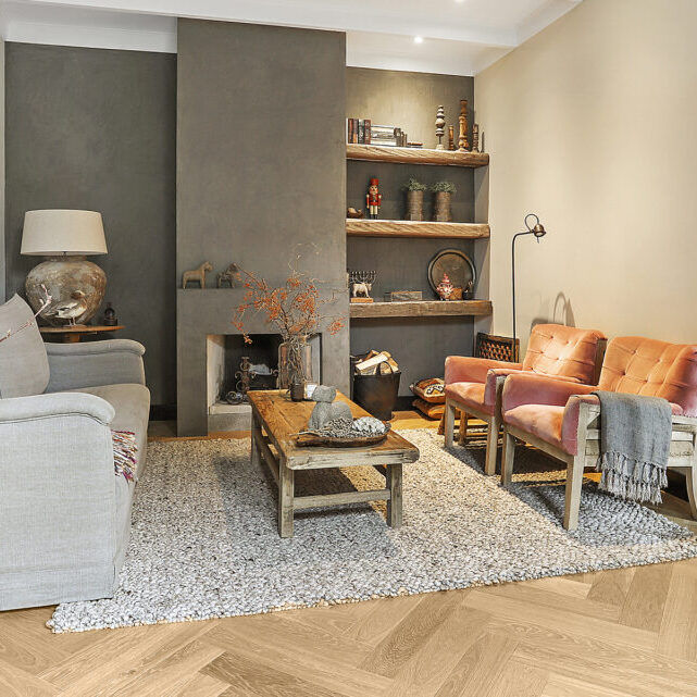 Een harmonieuze mix van landelijke charme en moderne verfijning, waar warme materialen en rustig kleurgebruik de authentieke sfeer versterken.
